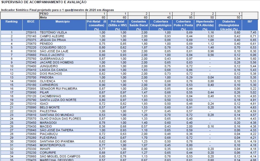 A posição de destaque foi conquistada na Avaliação do programa Previne Brasil, onde Campo Alegre ficou em segundo lugar, atrás apenas do vizinho município de Teotônio Vilela.